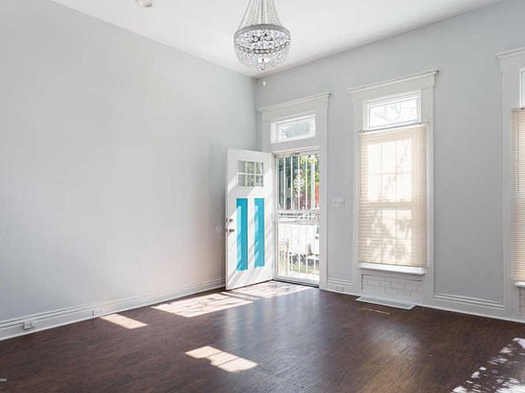 An impressively spacious and newly improved home in an up-and-coming neighborhood. The high-ceilinged living room, with teardrop chandelier and bricked mantlepiece, would be a great place to entertain. The fun can spread to a grand kitchen, with space for a dining table and plenty of room left to breathe. Guests may WANT to linger in the kitchen, with all new appliances, cabinets, and a gorgeous mosaic backsplash. Bathroom has equally beautiful tile that shimmers under natural light.
