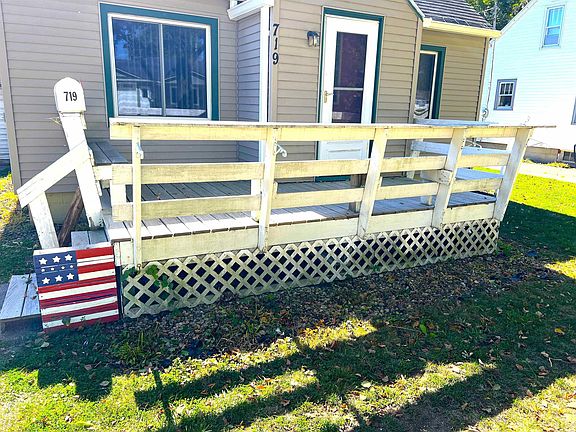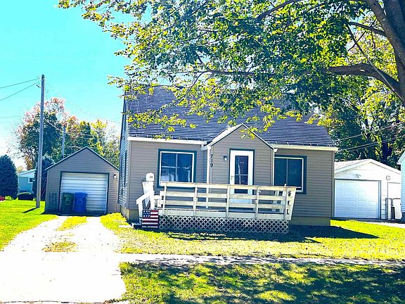 Check out this 2 Bedroom Home close to our local Elementary and High Schools and within walking distance of our local walking-bike trail, fitness center-East side park and downtown area. This home features on the main level a bedroom- laundry room, 3/4 bathroom, living and dining room along with kitchen. Upstairs you will find the 2nd bedroom and a multi-purpose room and storage. The basement offers another partial bathroom and several rooms for storage. Relax out front on the wooden deck with built in seating. Also, outside a detached garage along with a nice sized back yard off from the rear entrance. Bonus for 1st time home buyers and investors the appliances are included with the property!!