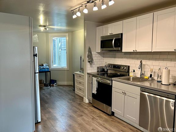 Updated 3-bedroom, 3-bath second floor unit in a North Beach duplex. This spacious home features laminated wood floors, double-pane windows, and an open-concept layout. The kitchen comes equipped with an electric stove and oven, perfect for cooking and entertaining. Enjoy the convenience of 1-car parking in the garage and a shared outdoor space for relaxation or entertaining. Located in a prime neighborhood, just steps from popular cafes, restaurants, and iconic city views.