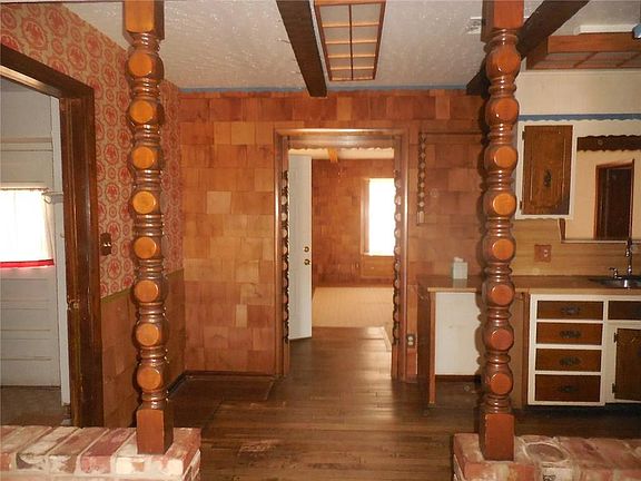 Unbelievable Space. Total of three living areas, 3 beds, 1.5 baths. Third living area is large with fireplace, built ins, opens to outstanding deck canopied with tall trees.