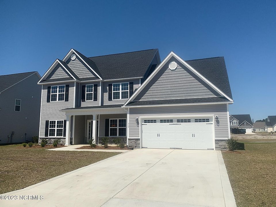 Welcome to the highly desired & popular community of Onslow Bay. Brand new construction built by Onslow County's most trusted & preferred builder, featured in Builder 100/ Top 200 Builders in the country. Onslow Bay is a hot spot, 3 miles to MCB Camp Lejeune's Piney Green gate, 14 miles to New River Air Station & minutes to area schools, shopping & dining. This beautiful neighborhood is sure to impress, complete with a clubhouse area & community pool. The Burton floor plan features a charming front porch boasting great curb appeal. 4 bedrooms/2.5 bath, approx. 3078 heated square feet. A quaint foyer opens to the formal dining room and formal living room for a warm welcome home. A 12 x 12 kitchen with bar top is also open to a cozy breakfast nook and a spacious 15 x 16 family room. Kitchen appliances include a smooth top range, dishwasher, and microwave. The family room features a ceiling fan and a fireplace with decorative mantle. The master suite is huge, 22 x 16, and is located on the main level. Accented by a ceiling fan and a 7 x 7 walk-in closet! Relax and unwind in this dreamy master bath with a double vanity, separate toilet closet, and a separate tub/shower. Bedrooms 2, 3, and 4 are oversized and all have actual walk-in closets. Yes please! A grand 19 x 18 bonus room is a great den space or game room. There's even a home office space that could also be used as a playroom or whatever additional space you may need. This amazing floor plan is big and beautiful. Complete with a covered back porch and a 2-car garage. $10,000 USE AS YOU CHOOSE!! Call today to view. NOTE: Floor plan renderings are similar and solely representational. Measurements, elevations, and specs may vary in final construction. No selections/changes can be made. Call L/A to verify.