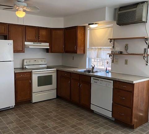 2BR, 1 Bath apt. 1st floor. Washer/Dryer. Refrigerator. Deck. Off street parking. Heat, water, sewer & trash included. No pets or smoking. Close to train station access and shopping. $1495/month + electric Tenant pays electric