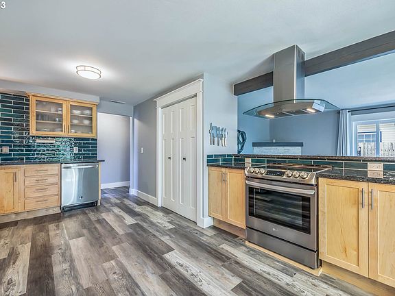 Luxuriously remodeled three-bedroom craftsman-style home situated in the desirable West Kelly Butte neighborhood, one mile from Autzen Stadium! This Good Cents (energy saving) home has been completely remodeled with high-end finishes and a lovely open-concept great room layout, perfect for entertaining or guests. As typical with Good Cents homes, there are many energy saving and quality of life improvements that are not typically found in most homes, such as six-inch thick exterior walls, and triple-paned argon-filled windows that can be opened three different ways, including European/hopper-style for easy cleaning. This home boasts a new roof, new gutters, new high-efficiency 95%+ gas forced-air unit and 13 Seer AC unit, new natural shaker maple cabinets throughout, new granite counters throughout, new trim throughout, new front door and interior doors throughout, new front yard fencing/gates, new luxury insulated and near-silent garage door/opener, room for 6+ cars and RV Parking. The spacious kitchen is an absolute delight to cook in with a 14" wraparound breakfast bar, peninsula, extra-deep industrial under mount sink, beautiful ceiling-high backsplash, a plethora of storage and new stainless steel LG ENERGY STAR/Smart appliances, including a fancy induction/convection range which cuts cooking times in half (direct heating/better than gas). The neatly landscaped backyard space is a perfect size for children, pets, relaxing and partaking of meals under the covered deck while listening to the many birds and enjoying the twinkling eastern views of West Kelly Butte. This home also features a very nice detached office complete with a new sub-panel, new cadet heater, new shop lights and more. As you walk through the home you will notice that no detail was spared, and the colors and design concepts are refreshingly cohesive, yet not overly monolithic. Don't miss your opportunity to own this gorgeous single-level like-new home!