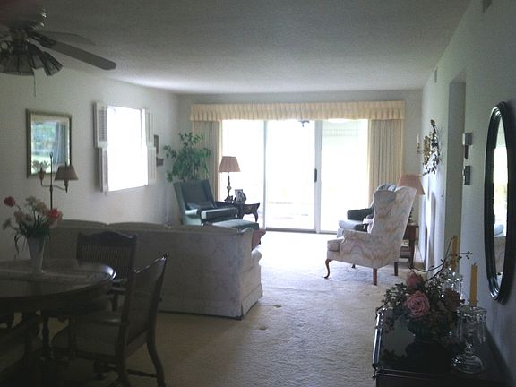 FIRST FLOOR: 2-Car "Enclosed Garage". Unit is next to Condominium entrance w/ extra pantry in Kitchen w/ pass thru to dining area. White counters and appliances. Baths w/ white appliances. Newer windows and hot water heater. Overlooking part of tee #3 and the vast expanse of the greenbelt to the south of the tee. Condo Assoc Fee: $192/mo.