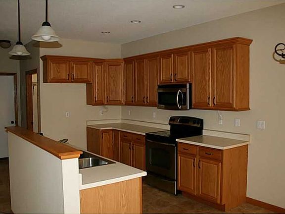 Open Floor Plan Ranch that welcomes you! 4 Bed, 3 Bath with first floor laundry. Open kitchen to great room has upgraded crown and under cabinet trim. Spacious great room with firelplace for those cold nights. Eat in nook leads to large patio for outdoor entertainment. Master suite has own full bath and walk-in closet. Additional 2 bedrooms on main floor are perfect for kids or home office. The entire main floor has high volume 9' ceilings. Lower level has huge great room, large bedroom and full bath. Basement is perfect for that expanding family with a teenager or overnight guest quarters. Additional storage in lower level and garage have built-in shelving. Garage being it's 3 stalls has all the room you need. Vinyl and stone exterior will make taking care of exterior a thing of the past.