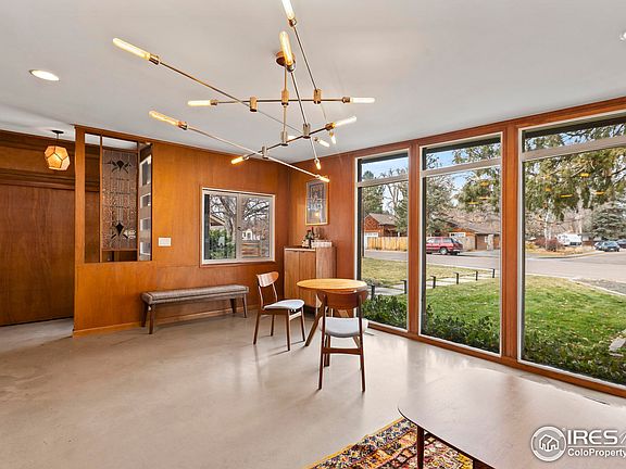Welcome to 719 Locust Street, where mid-century charm meets modern sophistication in the heart of Old Town Fort Collins! This 4-bedroom, 3-bathroom home, remodeled by Forge & Bow, sprawls across 2,457 square feet of meticulously designed living space, all set on a private, generous 10,585 square foot lot.Step inside to discover original sealed concrete floors that guide you through a bright and airy floor plan, accentuated by soaring vaulted ceilings, large windows, and skylights. The living areas has two cozy wood-burning fireplaces, perfect for those chilly Colorado evenings. The original 1950's woodwork in the home is in excellent condition and an exquisite example of mid-century modern craftsmanship. The original and functioning entry-way copper water feature and numerous original light fixtures will wow any MCM design aficionado.The kitchen is a culinary dream, featuring solid marble waterfall counters, a Zephyr range vent, wine fridge, and floating shelves. With task lighting, a 5-burner cooktop, a huge pantry, and extensive cabinet and counter space, this kitchen is both beautiful and functional.Retreat to the primary suite, complete with dual closets and an oversized ensuite bathroom. Indulge in the luxury of dual shower heads and a floating bathtub with an overhead water faucet, and private water closet. Step into the back yard through the master for a private outdoor living area, or venture further into the shaded mature yard with raised garden beds, covered patio with built in gas firepit and separated grill area. This home is equipped with four heat pump HVAC systems, two natural gas furnaces, modern electrical system, distributed built audio speakers and a new 40-year membrane roof installed in 2024. Enjoy the convenience of an oversized 1 car attached garage with 220v outlet for electric vehicle charging.Experience the perfect blend of vintage allure and modern amenities at 719 Locust Street. Your dream home awaits!