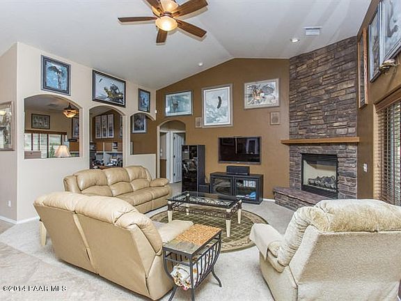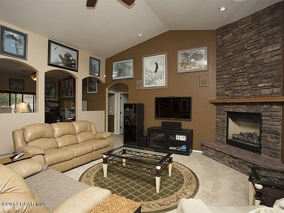 This is a must see home! It is a beautiful, well maintained ranch style with 4 bedrm + den, 3 car garage + huge attached workshop/ man-cave media room. Two RV parking areas, one with hook ups This horse property backs to open land. Upgrades include diagonal ceramic tile, floor to ceiling stone fireplace, surround sound, large kitchen with stainless steel appliances, custom window treatments throughout and cathedral ceilings. Zoned heating and cooling. Enjoy your built in BBQ in the backyard and the serene setting.