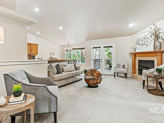 Carefree 55+ living with serene waterfront views just minutes to the heart of downtown Eagle! Located in a charming gated community, this move-in ready townhome has enviable access to dining and shopping downtown, Eagle Hills Golf Course, the Eagle Library, and great parks and trails. The incredibly well-maintained interior has an accessible floorplan that lives like a single-level with lower-level guest quarters. The living room, kitchen, and dining connect under vaulted ceilings with brand new main-level flooring, and beautifully large windows that frame the tranquil pond setting where nature's beauty serves as a piece of ever-changing art. The kitchen is outfitted with an abundance of cabinet storage and a walk-in pantry, while a large breakfast bar, dining area, and balcony provide ample space for entertaining inside and out! Two bedrooms and two bathrooms sit on the main level, including the spacious primary suite with a walk-in closet and en suite bathroom.