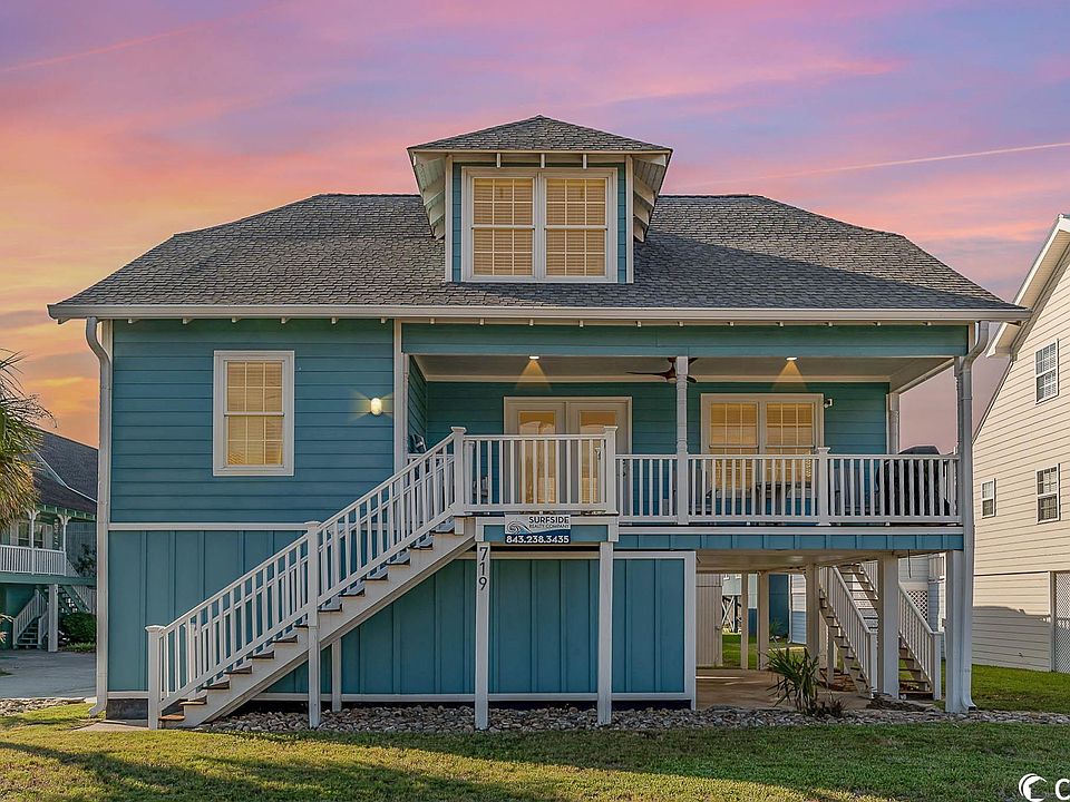 Welcome to this charming beach home located in the heart of Garden City Beach. Situated on the corner of N Waccamaw Dr and Easy St, this 2nd row property offers fabulous beach access right in front of the house. Best of all, it allows for short term rentals and has NO HOA. The home is conveniently nestled between Garden City and Surfside Beach piers, putting you close to all the best restaurants, attractions, and activities in the area. From the Surfside eateries to the Murrells Inlet Marsh Walk and The Market Common, you'll have endless options for entertainment. Before you even step inside, you'll notice the attractive Hardy board siding that was installed and painted in 2019. The landscaping, deck boards, and new vinyl handrails were also recently added, giving the home a fresh and updated curb appeal. Once inside, you'll be greeted by a welcoming coastal palette, featuring 16x16 travertine tile, smooth ceilings, and stylish LVT flooring. The kitchen is a highlight with new stainless steel appliances, white cabinets, and granite countertops. The main level offers two comfortable bedrooms with King beds and a Jack and Jill bathroom setup. Upstairs, there are two spacious bedrooms and a recently updated bathroom featuring a walk-in shower. The home comes fully furnished, including the mattresses and televisions that were purchased in 2019, so you can move right in and start enjoying your beach retreat. With the beach just a stone's throw away, outdoor living is a must. Convenient features like an outdoor shower and storage room on the ground level make storing beach gear and getting rid of sand a breeze. The two exterior decks are ideal spots to unwind with a cocktail or enjoy your morning coffee while taking in the sights. Don't wait too long - this short-term rental friendly property with NO HOA on N Waccamaw Dr in Garden City is sure to sell quickly. Start making memories in this fantastic beach home today.