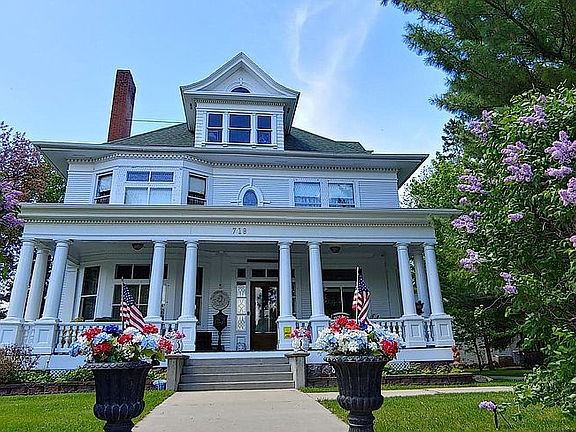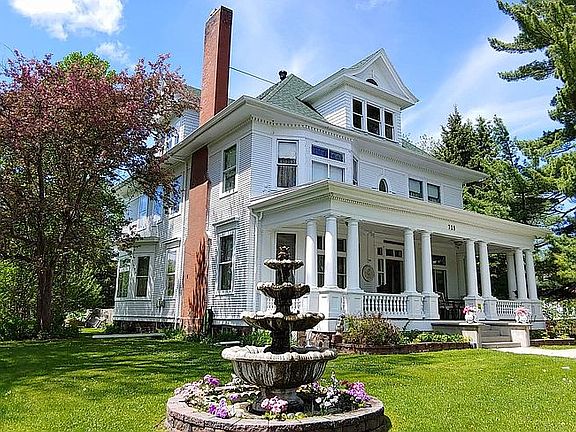Once in a lifetime opportunity to own a piece of history! Magnificent Colonial Revival home, built in 1904, has been lovingly restored. From the original quarter-sawn oak floors to the soaring 10 foot ceilings, every inch of this home is luxurious. Beautiful tiger grain oak floors, trim work, paneled walls, beamed ceilings and several sets of massive pocket doors. Exquisite stained glass and beveled/leaded glass windows throughout. Numerous built-ins include a stunning china closet in Dining Room. Ornate brass doorknobs, glittering crystal chandeliers, five huge bay windows, two fireplaces and a grand staircase round out the opulent interior. Full basement includes second kitchen, large laundry room and cellar, plus several unfinished rooms with plenty of room for storage. Third floor servants quarters and ballroom. Total square footage: 5,850. Two garages totaling 4 stalls, plus plenty of on and off street parking. Beautiful grounds surrounding the home with many mature trees, flower beds, statues and a large fountain. Large half acre lot allows plenty of room for outdoor enjoyment. Excellent business opportunity. Has been open for tours in the past. Is currently being operated as a Bed & Breakfast. Option to purchase turn-key, completely furnished in period antiques. Offered for sale by owner.