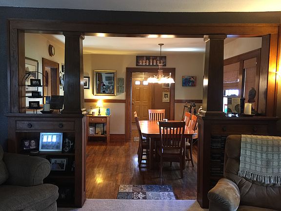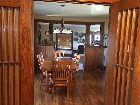 Beautiful home with great location! Dead end street just blocks from the elementary/middle school and high school. Upper level bathroom remodeled in 2015. Fresh paint in living room and upstairs hallway. Original oak woodwork in great condition. Third bedroom includes a sun room. Dining room and sun room feature French doors. Fridge, stove, washer, dryer, microwave, window treatments and ceiling fans stay. Beautiful open front porch and rear deck. Basement and garage benches/shelves stay. Large two stall garage. Central air.