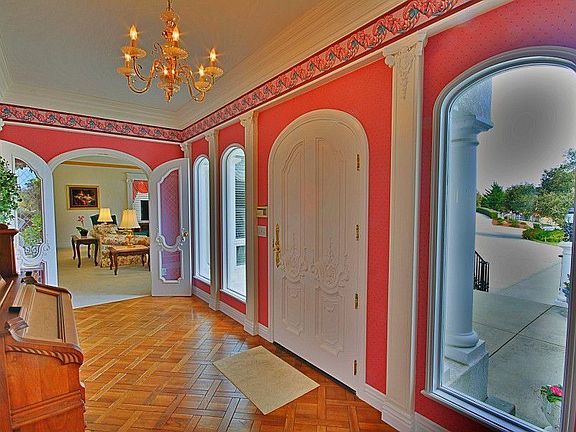 Country home with influence of French/English decorative detail to crown molding,doors,columns,fireplaces,built-ins and more..amazing pictures will tell all! Unbelieveable attention to detail! Large living area with marble fireplace &lg dining rm w/decorative cabinet& crystal chandelier.Views of oaks in patio &valley & ocean sunsets Triple crown molding throughout and arched french etched glass doors.Master with marble frpl.,bath w/ jacuzzi.Huge gourmet kitchen w/granite light oak cabinets Listing originally posted at http://tours.tourfactory.com/tours/sizetour.asp?t=712659