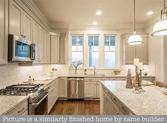 New Construction Home by prominent local builder. 0pen floor-plan w/ 4 Bedrooms, 3.5 baths, attached garage. All selections by interior designer including gourmet kitchen with granite, GE Stainless gas range/cooktop, island, walk-in pantry, 42" maple cabinets. Main level has 3 1/4" oak floors, 10 ft ceilings, extensive molding, and built-in cabinetry around gas fireplace. Main Level master bedroom with large walk-in closet, double vanity with granite, garden tub, tile floors. Walkable location!
