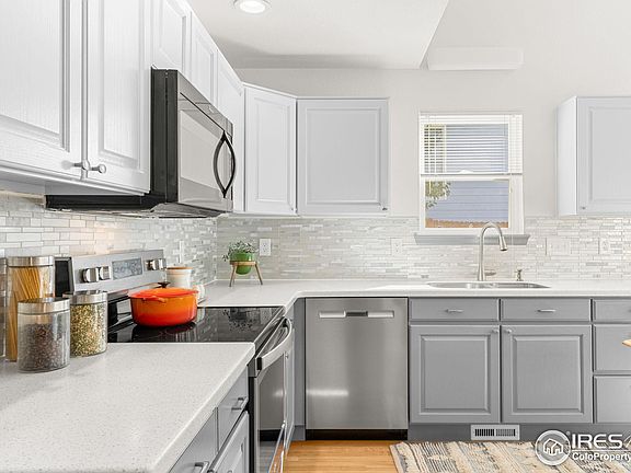 Welcome to 719 Pendleton Avenue, a charming and meticulously maintained home in the quiet neighborhood of Rider Ridge. This delightful 3-bedroom, 3-bathroom residence spans 1,677 above ground square feet (+ 1,244 unfinished basement) and offers an array of inviting features and modern amenities. Step inside to discover gorgeous hardwood floors that flow seamlessly throughout the home. The main level boasts a bright and airy primary suite, complete with a luxurious en-suite bathroom featuring a relaxing tub, glass-enclosed shower, heated floors, double vanity, and a spacious walk-in closet.The heart of the home is the renovated kitchen, which is both stylish and functional. With light grey cabinets, ample counter space, and an open layout, it's perfect for both casual dining and entertaining in the connected great room and formal dining room.Venture outside through the kitchen to experience your own private backyard oasis. The curated garden includes vibrant garden beds, a serene fish and lily pond, and mature foliage. A custom pergola adorned with vines provides a picturesque spot for outdoor gatherings or relaxing afternoons taking in the Front Range views. Additional highlights of this home include an attached 2 car garage, newer AC, and newer roof. This home truly combines comfort, style, and convenience for a plug-and-play lifestyle. MAIN LEVEL PRIMARY BEDROOM!