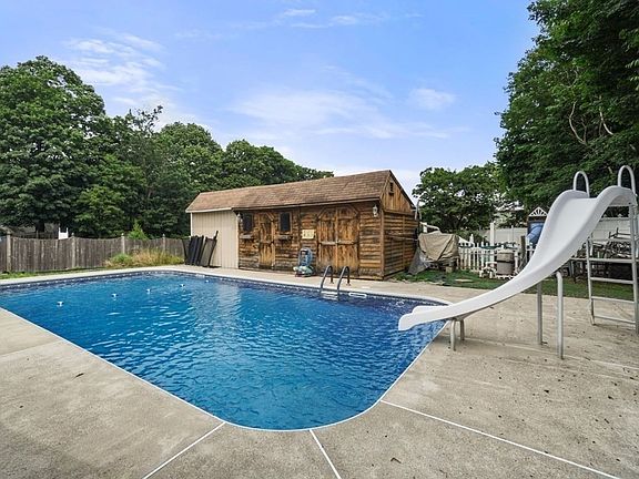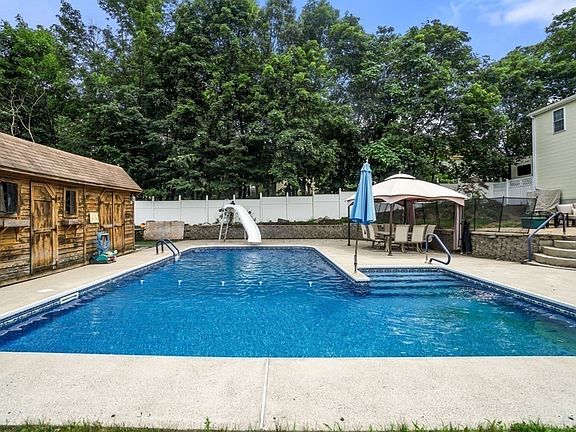 ***OPEN HOUSE CANCELLED Beautiful 5 Bedroom 3.5 bath, Center entrance colonial situated on nearly half an acre of land. The main level has been renovated with a brand new kitchen including stainless (2022) GE Cafe appliances. New flooring throughout the kitchen, dining and living area as well as an updated bathroom. Cozy gas fireplace in the living room. The main bedroom is complete with walk in closet, laundry and a full bathroom. High efficiency heating and cooling systems upgraded in 2020. Whole house water filtration system. Fully vinyl fenced, sprawling backyard with inground salt water pool enclosed with a safety fence. Fenced in play area and structure. With all these features, this home offers a spacious living environment, updated kitchen and bathrooms, and a backyard perfect for outdoor summer months. Pool updates include liner replacement 2018 and new cover 2019. Finished walkout basement with laundry and full bathroom. Perfect for potential in-law or teen suite.