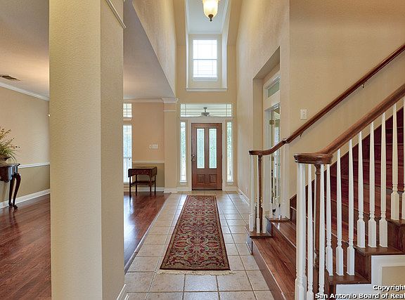 On almost a full acre in one of the most sought after areas in SA. This home boasts a open floor plan with soaring ceilings. The great room features a fireplace and a view of the pool and flows into the gourmet kitchen. Newly added sunroom. Wood and tile throughout the home. The MB offers a sitting area as well as a spa tub and large walk in closet. The second floor has a gameroom and 3 large bedrooms. The BY features a heated pool/spa/waterfall and is populated with fruit trees and veg garden
