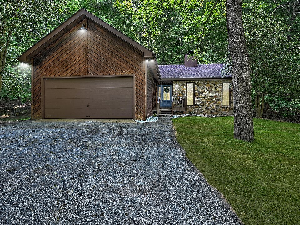 **Multiple Offers! Highest and Best due by July 12 at 1 pm.**This professionally renovated chalet, nestled on a picturesque 3-acre parcel of land, is located near Gray between Kingsport and Johnson City, offering both tranquility and convenience. The wood and stone façade of this home makes it blend effortlessly into the natural environment, creating a harmonious atmosphere. Inside, beautiful new flooring and contemporary fixtures are featured throughout the home, providing an elegant and welcoming ambiance. Relax in the spacious living room with its stunning ceramic tile fireplace, perfect for cozy evenings with loved ones. The spacious kitchen is a culinary enthusiast's dream, complete with a beamed ceiling, new stainless-steel appliances including a built-in microwave, and plenty of cabinet space. New granite countertops and white subway tile backsplash add a splash of sophistication. A versatile sunroom provides endless possibilities for entertaining and creating lasting memories. The primary bedroom is generously sized and opens to the deck, offering a private oasis to unwind and enjoy the serene surroundings. A new roof ensures peace of mind, while the auxiliary garage provides ample space for a camper or storage. The attached garage boasts a new epoxy floor, offering plenty of parking and additional storage space. Don't miss out on the opportunity to make this beautiful home your own and experience the best of both worlds—a peaceful retreat in nature with convenient access to nearby Tri-Cities amenities!
