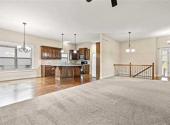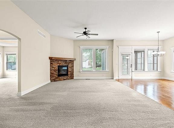 Welcome Home to this Beautiful 1.5 Reverse featuring Main Level Living, open, spacious living areas, large kitchen island, walk in pantry, and natural lighting throughout! Custom features in Master Bath/shower. Enclosed Sun Room adds space for entertaining or quiet enjoyment. 2 bedrooms & 2 bathrooms on the main level. Walkout Lower Level includes 2 more bedrooms, 3rd full bath, ample storage & large family room. Wonderful Family neighborhood w/ Raymore Recreation Park as well as other parks and trails nearby!