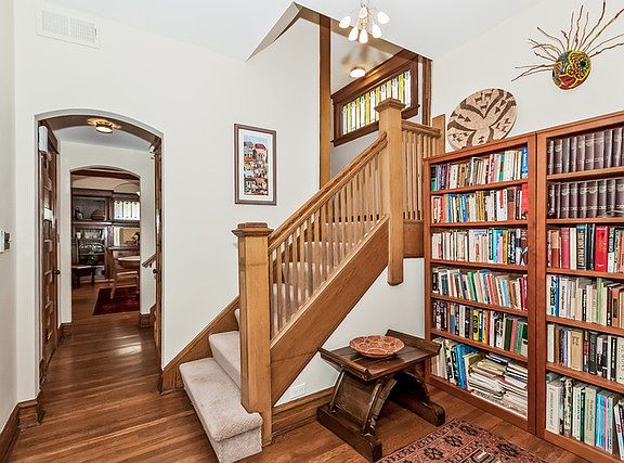 Updated, Upgraded & Ready for You! 3rd floor Master Suite. 4 Bedrooms on the 2nd floor. 3 full Baths. Top of the line finished Basement. Enjoy soaring ceilings, hardwood floors, wood trim, stained glass, many new windows, Lightology fixtures, heated bathroom floors, custom built-ins, blinds, radiator covers & more. Dining Room boasts the original beamed ceiling. Click Virtual Tour link to see floor plans & MANY pics!