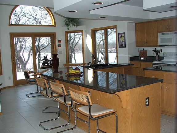 Enjoy living on Waterville Lake with privacy on a 1.69 acre wooded lot. Family fun with boating, swimming, fishing, beautiful sunsets, & a private pier. Walls of windows with views of the lake. Spacious kitchen is the heart of the home with granite, breakfast bar & island. LR features a stone natural FP. Master bedroom suite features walk-in closet, soaking tub and walk-in shower. Main floor laundry, pantry storage & 3-seasons room. 3 car attached & 3 car detached garage. Sport court with plenty of room to ride bikes or play tennis. Extra tall 13-course basement. Home Warranty Included!