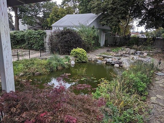 Completely renovated in 2008 including roof, double-paned windows, high efficiency furnace, hot water tank, electrical wiring, baths, walls & flooring. First floor bedroom and bath. Beautiful fenced bank yard with multi-level water feature., Work shop with electric, corner lot.