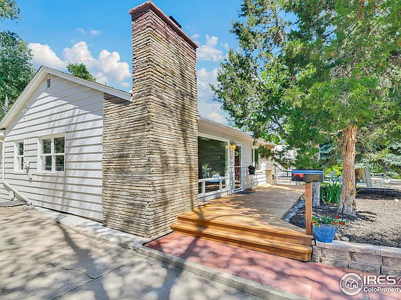 Presented to you is an astonishing mid-century home situated in the western side of Old Town Longmont. As you pass the stacked stone chimney and step inside from the front deck, you are welcomed in by a spacious living room with glimmering hardwood floors. The room also showcases its corner wood-burning fireplace with stone hearth; and the custom front picture window allows for an abundance of natural light. The newly remodeled bathroom possesses a deep soaking tub, (reminiscent of a relaxing trip to the day spa) and a unique heated anti-fog and ambient lighted mirror. Enjoy your kitchen with newer appliances, granite countertops, composite sink, and ample storage. This home has been freshly painted throughout and is ready for you to make it yours! The impressive back yard is truly a showstopper! The meticulously maintained outdoor space provides ample opportunity for seasonal entertainment of guests or casual household dining. The thoughtfully designed property includes 5 raised garden beds (totaling 160 sq ft ready for your green thumb complete with irrigation line), a large, enclosed chicken run and coop, and additional shed for storage - ready to create your in-town homestead! The terraced front is a gardener's paradise with drip irrigation lines ready for the ease of low-maintenance living. The preexisting detached garage has been spiffed up and shines with large windows, insulation, drywall, recessed lighting, exposed wood beams, and a French door entry. The space also has split-air cooling/heating and is ready for you to create the workshop/she-shed/studio you've been dreaming of! Since 2020, the property has benefited from new windows, replaced roof, upgraded electrical service and panel, new water heater, and appliances. This move-in ready home awaits you!! Much consideration went into this property to incorporate more efficiency and to maximize its utility. Don't hesitate -- reserve your showing today to decide if this opportunity is right for you!!