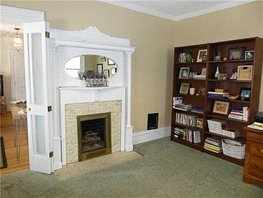 Charming two story Coloial w/covered front PORCH, wonderful ENTRY w/guest CLOSET, updated POWDER ROOM, LIVING ROOM w/decorative fireplace, elegant DINING ROOM w/built-in china cabinet, great newer KITCHEN w/white cabinetry, pennisula , BREAKFAST AREA, step down to family room w/fantastic stone-faced, log burning firplace and door to side PATIO, four BEDROOMS, FULL BATH, cabinet w/granite countertops, tub & shower w/ceramic surround, table-top fenced lot, heart of the village, close to everything!!