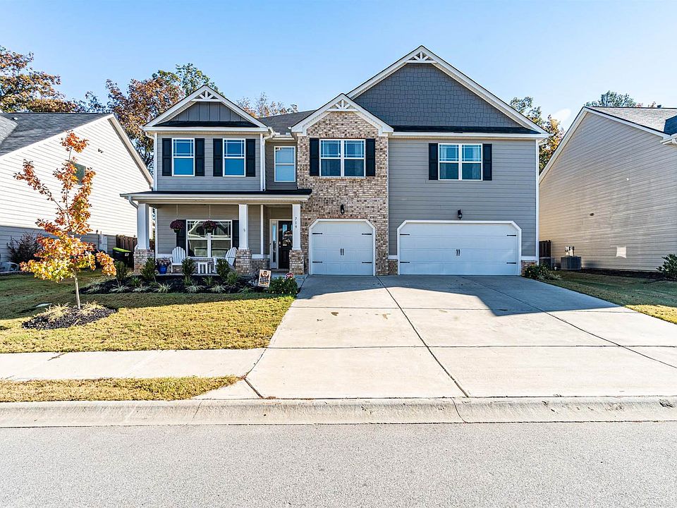 Beautiful craftsman in Willow Creek Estates zoned for award winning Lexington One Schools! This five bedroom home sits at the beginning of a cul-de-sac and features amazing finishes throughout. The first floor offers high ceilings, extensive molding, hardwood floors, gas log fireplace, flex room with two story ceiling and french doors, separate office, and a spacious, open floor plan. The kitchen features a large island, double oven, gas range, custom walk-in pantry with outlets for your small appliances, and stainless steel fridge. The owners suite provides tray ceilings, double granite vanity, tiled shower, separate garden tub and large walk-in closet with custom shelving. Upstairs you'll find a large loft and two spacious bedrooms (total of four) on either side joined by Jack and Jill bathrooms. Completing the second floor is the large laundry with washer and dryer, folding counter and hanging rack. Outside you'll enjoy your fenced in backyard under your covered porch. Willow Creek Estates offers a large community pool with cabana and sidewalks.