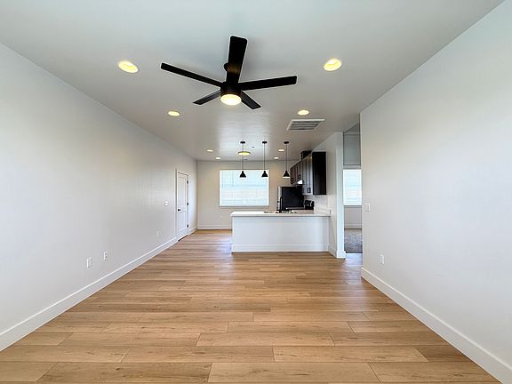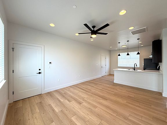 Two bedroom, one bathroom second floor apartment with one-car attached garage. Beautiful brand new unit with many upgrades throughout including custom cabinets, quartz countertops, custom tile, custom fixtures, all appliances including dishwasher and garbage disposal, pantry, extra oversize storage closets, laminate flooring with carpeted bedrooms, garage with automatic opener and washer/dryer hook-ups, and small patio area. All electric with solar panels and air conditioning in each unit. Located close to shopping, restaurants and approximately two miles to Hospital. Apartment square footage is 771 sq ft and garage square footage is 362 sq ft., totaling 1,134 sq ft. Tenant pays utilities. No smoking and no pets. One year lease. Tenant pays all utilities. No smoking and no pets. One year lease.