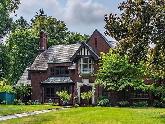 This fantastic Tudor home will have you questioning where you are! By far one of the best examples of architecture in our area. Built originally by a wealthy Furniture maker, this home is truly a one of a kind with incredible exotic woodwork and inlays. Fabulous floor plan with all of the perfect spaces to entertain in style. Spacious rooms, plaster ceilings, fireplaces, original fixtures and stunning details. Open kitchen with attached family room and butler pantry with a generous amount of cherry cabinets and quartz counter tops! Mature landscaped yard and patio for outdoor entertaining!