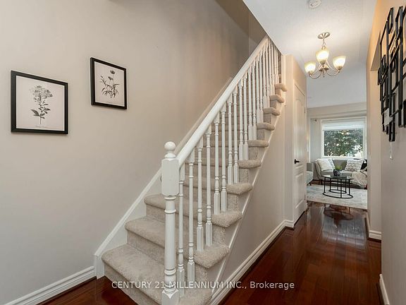 Welcome to 7190 Atwood Lane, situated in the highly sought after Meadowvale Village! This beautiful home featureas hardwood floors on the main level with an open concept layout and a walk out to your private back deck. The upper level features freshly laid high quality laminate flooring, 3 spacious bedrooms and the primary has a 2 pc ensuite! ! The basement is finished with a large storage room that could easily become extra living space or even a bathroom! This complex offers some of the lowest fees out there of only $308/month! This beautiful family neighbourhood offers the Meadowvale Conservation Area up the road, public transit almost at your door, places of worship and the GO train just 5 minutes away and the 401 and 407 highways just 5 minutes around the corner too! This gorgeous mature, family driven complex offers low maintenance fees, a very well-run management team and an awesome children's playground. This is incredible value for one of the best neighbourhoods in Mississauga, dont miss out!