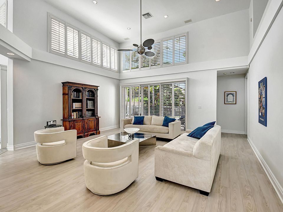 Move right in to this updated modern 3 BR 2.5 bath home for sale in Island of the Grove. Dramatic high ceilings with abundance of natural light in this open split floor plan. Oversize master bedroom with 2 full walk in closets. 2 additional spacious bedrooms with a jack and jill bathroom. Private backyard with heated pool, luscious landscaping, and plenty of room for outside entertaining. FULL HURRICANE IMPACT GLASS AND DOORS AND FULL HOUSE GENERATOR. Very close to house of worship. Must see to appreciate.PURCHASE NOW BEFORE CAPITAL CONTRIBUTION INCREASES $50,000 ON MAY 1.Boca Grove is a mandatory membership country club community.