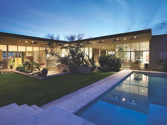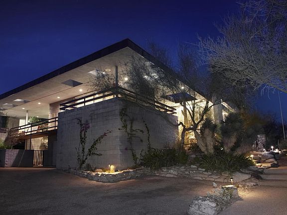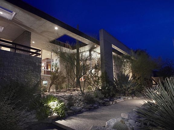 For more information on this property, contact the Listing Agent, Judy Smedes and Kate Herk at (520) 360-6600 or judy@judysmedes.com. Organically designed to the site and built by acclaimed architect LES WALLACH, this home is the epitome of quality and originality and incorporates an appreciation for nature & nurture. Its bold, award-winning architecture offers sweeping city, mountain, & sunset views. Multi-textured design incl split-face block construction, natural stone cantilevered FP, 3/4'' ash floors, dark walnut floors in Master Bedrm, slate in GH and patio, floor to ceiling windows in Great Room. Top line appliances incl steam oven. Self-sustaining 2 Bedrm GH borders on the pool area & Greenhouse & forms superb family compound. Sauna, solar heated diving pool, evap. cooling on patios, X-10''Smart'' lighting system,heated floors in Kitch/Bathrms, lush backyd, RV Garage. Great for entertaining/gardening/stargazing.