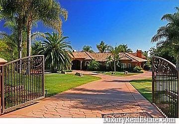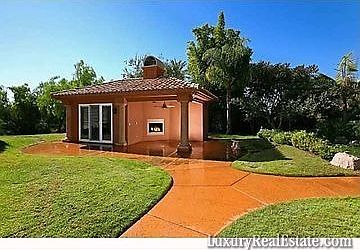 Could be front cover for Architectural Digest! Exquisite single level Rancho Santa Fe estate has tropical pool, lighted tennis and sport court, waterfalls, citrus orchard and private guest house. Gourmet kitchen will delight most flambuoyant chef, and private front office offers built-ins, fireplace and panic or banker 's room. Master suite hasdual dressing areas, fireplace and exercise room. This home exudes timeless elegance--and invites easy living,