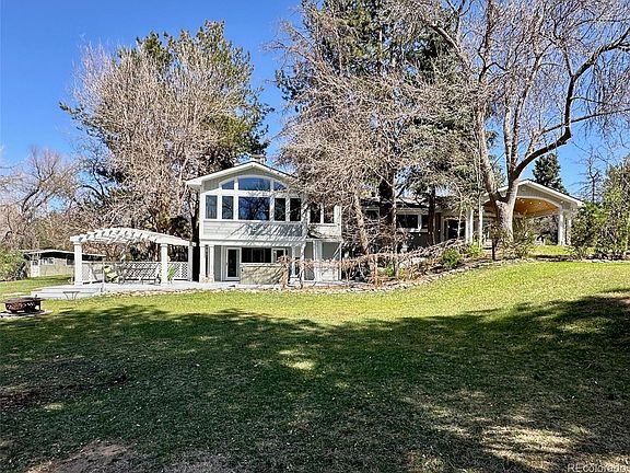 BACK ON MARKET APRIL 12, 2024! VIEWS ABOUND on this gorgeous 2.3 acre lot just minutes from historic downtown Littleton. Secluded, yet close to everything! A true Colorado lifestyle on this property with a large pond, many gardens, plenty of trees, ducks, geese, even a small vineyard! Several outdoor entertainment and living spaces. Covered patio, gazebo, fire pits, utility barn, playhouse and more! Inside the remodeled main floor is a gorgeous large primary suite with incredible views. Double sinks and steam shower in the primary bath. Large gourmet French country-style kitchen with Wolf range, copper range hood, Sub-Zero refrigerator, farmhouse sink, large office, foyer, and dining area. Sunken living room with real wood burning fireplace connects with large covered outdoor patio for great indoor/outdoor living. Three additional bedrooms, sunroom/workout-room and family room area on the lower walk-out level. Other features: Oversize two-car attached garage wired for EV. Ground mount solar PV arrays. New roof and gutters, newer exterior siding and windows. Shed/workshop outbuilding and playhouse/coop. Historic Littleton less than 2 miles away offers fantastic cafes, restaurants and shops. Recreational opportunities close by include Chatfield Reservoir, South Platte Park, Carson Nature Center, and the South Platte River Trail.