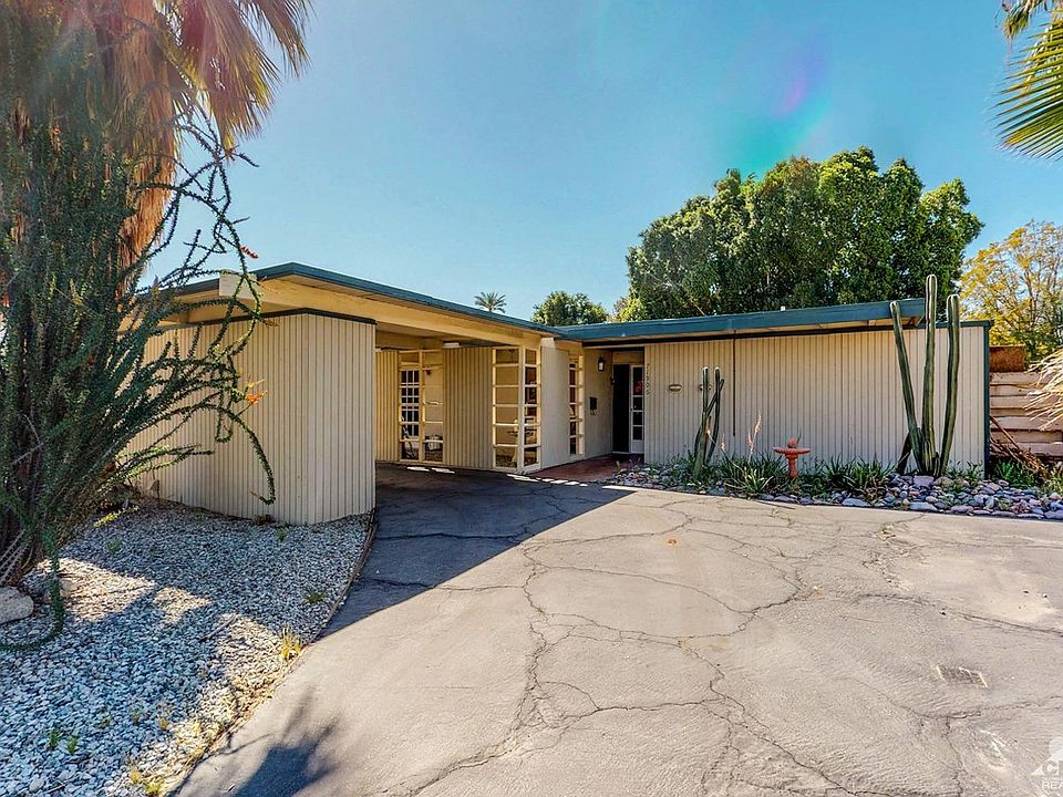 This is a charming and desirable 2br 2ba mid century home in the much sought after Tierra Del Sol community of prestigious Rancho Mirage . Contemporary Kitchen, Faux-Painted Concrete floors, Circular driveway and carport, and ample exterior storage. New A/C units, Energy Efficient Swamp Cooler, very low HOA dues of only $90 month and that features a great community pool for those hot summer days. Large open floor plan, two good sized bedrooms each with their own bathrooms too. Lots of natural light, very open and bright. Play Golf at Sunrise Country Club for only $3,500 year. Truly a super value at only $345,000 so Hurry on this one ! ! !