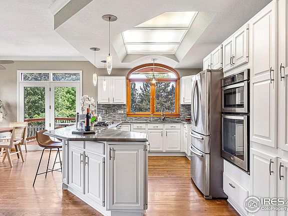 $100K Price Improvement! Perfectly situated close to Niwot's award-winning schools, the Niwot Market, Winot Coffee and Farrow restaurant, this sun-drenched, well-maintained home has an excellent open floorplan. Nestled on a half-acre lot on a tranquil cul-de-sac in a friendly neighborhood, this spacious property is surrounded by walking and biking trails. Its impressive double-height great room and cozy updated kitchen/family room seamlessly connect to the expansive west-facing deck, providing stunning seasonal views of the snow-capped back range and easy indoor-outdoor living. Relax with friends at the island while you cook at your 5 burner, down-draft stove, transition to sharing stories around your gas fireplace, then spill outside to watch the stars from your deck and hot tub (conveys). The main floor also features an office/bedroom with an attached 3/4 shower and laundry room. Upstairs, the generous primary suite has a balcony, mountain views, ample closeting, and a large five-piece bath. Two additional sizeable upstairs bedrooms share a full bath. The light and bright walk-out basement has two bedrooms with ensuite baths and a big common room; these spaces could be used for a children's playroom, teenage lounge, mother-in-law suite, second office, and gym (all gym equipment incl), - the possibilities are endless, all with convenient access to the front yard and the huge level, fenced back yard. The three-car garage provides ample room for parking and storage. Extra square footage within the garage accommodates a practical workbench, a mudroom, and gear storage, enhancing the functionality of the space; the brand-new shed amplifies your storage capacity. With the perfect location close to highly-regarded public and private schools, restaurants, shops and services, your new home search ends here.