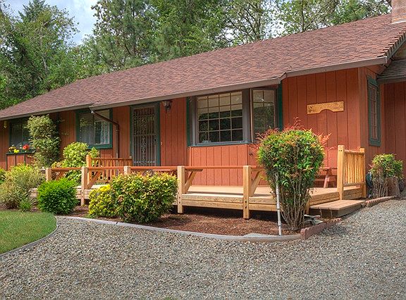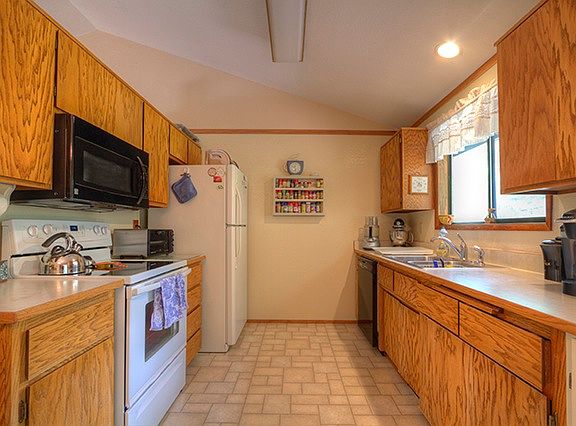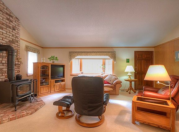 Extremely Well-Kept Single-Level Home in a Picturesque Setting on a slight knoll. Private Off-the-Road location, with a very comfortable and welcoming 3 Bed 2 Bath Frame-Built Home on just the right amount of Property. The Home offers an Open Great Room Design in the Living, Kitchen and Dining Areas. Living Room has Vaulted Ceilings and a Woodstove with floor to Ceiling Brick Hearth. Master Bedroom features a Slider to the Rear Patio and Fenced Yard. The 2.54 Acres is Fully Fenced and Gated. Property offers a gentle slope with a nice mix of Trees, Fenced Garden with Raised Beds, and a few Fruit Trees. A Spacious Composite Deck leads out to the Pretty Front Yard Area. Mature yet Easy-Care Landscaping is pleasing to the eyes. Parking includes an Attached Three-Car Garage, with the 3rd Bay being utilized as a Finished Shop. Two nice Storage Sheds and good supply of Firewood are included! Good access and Parking for Trailers, Boats, and more. This Home & Property are in excellent condition!