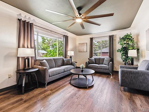 Beautifully updated classic red brick ranch on a .17-acre lot in Arvada. The main level features the living room with coved ceiling, family/dining room with wood ceiling and wood stove insert, remodeled eat-in kitchen with updated cabinetry, solid surface countertops, stainless steel appliances, pantry, and a greenhouse window that is great for growing herbs! 2 bedrooms and an updated full bath with original vintage yellow tub complete the main floor layout. The basement has been finished to include a family room, 2 bedrooms, updated 3/4 bath, and the laundry room with washer & dryer and storage space. Enjoy spending time outdoors under the covered back patio in the lovely back yard. 2 car detached garage and plenty of driveway parking. Gas forced air and A/C. Newer windows & doors on the main floor. Updated electrical. Front and back yard sprinkler systems. Conveniently located to all that Arvada has to offer such as Olde Town Arvada, Apex Secrest Recreation Center with indoor and outdoor swimming pools, Sunrise & Lew Walsh Parks, Arvada Center for the Arts, Indian Tree Golf Club, great Jeffco schools, shopping & dining options, RTD bus lines, and highway access.