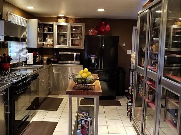 Very well maintained solid brick home, hardwood floors throughout the main level, you will get the WOW factor the minute you enter the front door, stainless steel kitchen cabinets with glass inserts, custom stainless hood and sink, lots of built-ins, large master with a huge walk in closet, custom standing safe large enough for the seasoned hunter or the woman with all the jewels. French doors lead out to the private backyard with enclosed patio with additional outdoor storage, new pergola with flagstone floor, attached redwood cabinet for BBQ equipment, new outside light fixtures, at least 4 off street parking spaces.