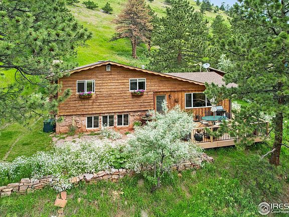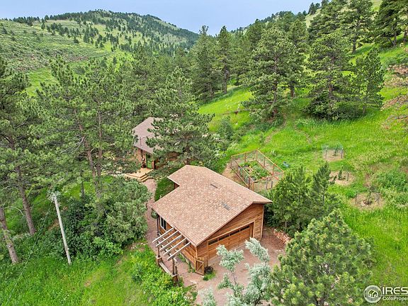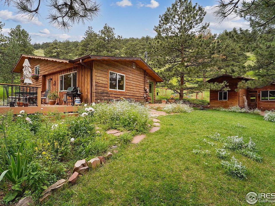 This gorgeous property north of Boulder offers all the quiet serenity and privacy of living in the foothills while still providing an easy 6-minute drive to Broadway and 15-20 minutes to downtown Boulder. The split-level ranch home and large, 2-car detached garage are situated on a 5-acre parcel that also includes a loafing shed, fenced paddock area, and 8x12 storage shed for those that wish to keep horses. There is a private trail leading to the top of the property; in addition, one end of the Joder Ranch trail (open to hikers, bikers, dogs, and horses) is less than a mile away. Birds and wildlife are abundant; a list of species seen regularly is available. A large, fenced vegetable garden and many flower gardens surrounding the house add to the beauty provided by nature. The home features rustic cedar siding, a large, low-maintenance deck for entertaining, and a smaller private deck off the primary bedroom. Since the two decks are on opposite sides of the house, there is always a spot that offers the right combination of sun, shade, and tranquility! Inside, the home includes the following: Three bedrooms (one currently used as an office) and a full bath on the top floor. The primary bedroom has a private deck with views of nothing but grass, trees and the occasional deer or fox. The main floor has new flooring, fully remodeled kitchen with granite countertops and new cabinets, dining room, sitting area, and large windows all around. The garden-level floor includes a family room with stone fireplace, guest bedroom, and a 3/4 bath. The lowest level has ample storage space, laundry room, far-infrared sauna, and an open room currently set up as an exercise room. Water supplied by Olde Stage Water District is high quality, but the home also includes both a water softener and a reverse-osmosis filtration system for added protection. Septic system features 2 fields and is in good working order. Visit soon to fully appreciate all that this property has to offer!