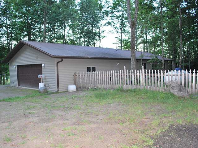 Newer 2 bedroom, 2 bathroom residence with an attached 2 car garage situated on 15.10 nicely wooded acres. This home is 1,456 sq ft and features in floor heat, spacious kitchen/dining area, living room and is very energy efficient. Located at the end of the private driveway there is no thru traffic to worry about. Also featured is a pond and this parcel adjoins State of Wisconsin Land. This home is bright, cheery and private. Ideal for first time home buyers or for someone looking to retire!