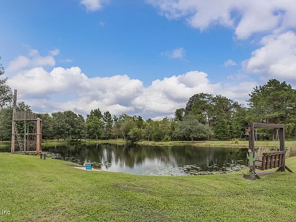 INVEST IN LAND!!! OVER 6.61 ACRES OF LAND WITH A ONE ACRE POND AND A BARN! Beautiful 3 Bedroom 2 Bath Brick Home in the country! Nicely updated home on the range! Zoned Agricultural! Plant your own food and raise your own chickens, farm fresh eggs every day! You can ride the zip line or take a quick dip from your own private beach. This home is the 3rd lot back from the main road and abuts a 600 acre preserve, and there is an alarm system for added security.Hardwood floors in the living area, granite counters, tumbled tile backsplash in the kitchen, and updated guest bath, as well as large covered patio overlooking the water, this home has the best of country living with modern amenities.