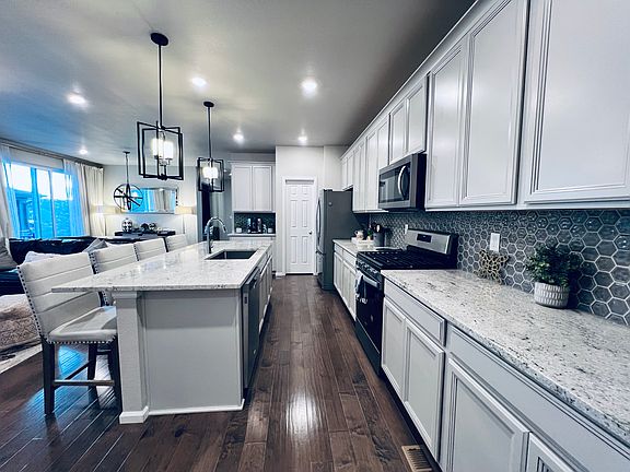 Energy-efficient paired home. This beautiful two-story paired home is equipped with a study, walk-in corner pantry, expansive kitchen island open to the great room, fenced in side yard, full unfinished basement, and second sink in the secondary bathroom. Stunning kitchen features include a gas range, granite countertops, painted white cabinets, and engineered hardwood flooring. Located near neighborhood park. This wonderful community in Castle Pines has gorgeous views and access to open space. Castle Valley boasts three different family-friendly parks. Community provides great access to DTC, Castle Rock and Colorado Springs. Renter is responsible for all utilities. One year lease duration. First and last month's rent due at signing. Well behaved dogs welcome! No smoking.