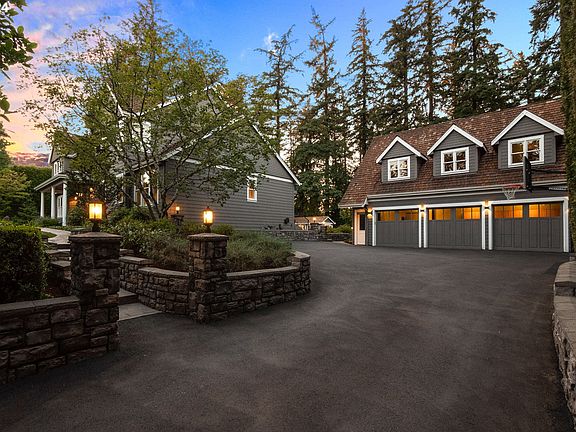 Striking Raleigh Hills Estate Home with Pool & Pool House, Guest house and original 1946 art cottage. 7195 SW Newton Pl sits gracefully on just under one acre of park-like grounds & is ideally located near top-tier schools & the PDX Golf Club! With luxurious finishes throughout, this residence includes 4 bdrms, 6.3 baths, a detached guest quarters w/ its own entrance over the garage, an original artist studio & a serene pool / pool house! Tucked behind a gated drive with tall mature laurel hedges as its border, you will find a private retreat. Upon entering, you're greeted into a traditional floor plan reminiscent of a New England Coastal Estate. Both the living & dining rooms are bathed in natural light & offer views of the manicured front lawn. Flowing seamlessly through the home, you will find a gorgeous kitchen w/ white painted woodwork, a farm sink, a spacious gathering island, coffee bar, & walk-in pantry, which then blends effortlessly into the dining nook & family room anchored by a gas fireplace via a wine wall corridor! On the main floor of the home you will also find a sitting area w/ french doors opening to the patio, a guest suite w/ high ceilings & privacy, a mud room complete w/ a dog wash station, cubbies & guest ½ bath! Ascending to the upper level, you will find 3 additional bedrooms all en suite, and a spacious laundry room. The luxe primary suite includes a sumptuous bath with dual spacious walk-in closets, walk-in shower & soaking tub! Adjacent to the bedroom is the primary suites' own office or nursery or flex room! The garage offers storage for a plethora of bikes, kayaks, tools & more, as well as room for 3 cars. Above the garage you will find the guest quarters w/ a great room, kitchenette & full bath! The vacation-like backyard features a fenced-in pool, spa & pool house. The grove of trees offer trails, room for play & a gathering space w/ a fire pit. Create a brilliant lifestyle behind the gates of this extraordinary compound!