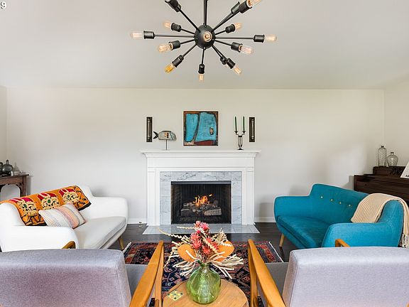 Montclair Mid Century Modern. 1958 Bauman built gorgeous home on beautiful corner lot in the heart of the neighborhood. This house has been beautifully restored. Stunning kitchen flows beautifully into family room. Modern open floor plan. Main floor master. Gorgeous baths throughout. 3 bedrooms up. Hardwoods. Considered lighting & finishes. 2 fireplaces. 2 car garage. Quality location: OES, Jesuit, New Seasons, The Coffee Shop + more.