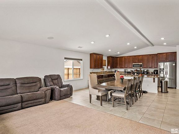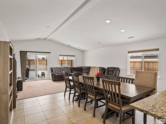 What better time than now to experience winter weather in North Reno. This single level 4 bedroom home with 3 car tandem garage and open floor plan awaits a new owner. High ceilings, a lot of natural light and room for all., The kitchen has granite counters, stainless steel appliances which includes the refrigerator and a large island for meal prep or entertaining. The adjacent living/dining area is perfect for game or movie night and holiday gatherings. The primary bedroom, which is located at the rear of the home, is large, has a slider to the backyard, dual sinks, soaking tub, shower and walk-in closet. The adjacent bedroom can be used as an office or den and the additional 2 bedrooms are at the front of the house. Let's not forget about the huge laundry room where you can come in and kick off those snow boots. It is also convenient when bringing in groceries. The yard has plenty of space for the critters as well as their humans. There is space for a small RV behind the fence. Don't miss out on this Lennar home. Call today!
