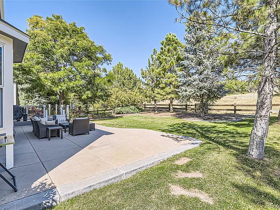 This stunning home in highly sought after Castle Pines offers the perfect blend of comfort, luxury, and endless possibilities. Nestled on an expansive lot with no homes behind and backing to open space, this property is a true gem. Enjoy peace and privacy with only two direct neighbors. The spacious backyard is a true paradise featuring an incredible maintenance-free deck and a large patio, perfect for outdoor entertaining. The mature trees and landscaping provide excellent shade and privacy. With newer major systems including the furnace, air conditioner, windows, and roof, you won’t be wasting money on updating these components. Inside, the open floorplan invites you in, with a bright and airy kitchen flowing into the great room and kitchen nook, all with spectacular views of the backyard and open space. The main floor boasts beautiful wood floors throughout the living areas, including a formal dining room that could also serve as a home office. The luxurious master suite, located on the main floor, is a true retreat, with oversized windows offering peaceful views and a stunningly remodeled master bath featuring a walk-in shower and gorgeous tile work. Upstairs, you'll find three spacious guest bedrooms—an unexpected treat at this price point—along with a second full bath. Additional updates include the beautiful main floor powder bath, the luxury LVP flooring in the master bedroom and new, taller base throughout the main floor. Looking for extra space? The unfinished basement with soaring 9’ ceilings offers endless possibilities, whether you envision a rec room, home theater, guest suite, gym, or private office. The 3 car garage provides space for both cars and toys! This home is just a two-minute walk to the HOA pool, playground, and tennis courts. It is also located across from award winning Buffalo Ridge Elementary, with easy access to the grass fields and playground.