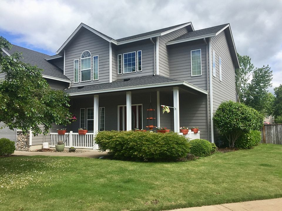 Custom built family home in desirable Thurston neighborhood located on a corner lot. 2047 sq ft PLUS 588 sq ft finished bonus room (which is not included in original square footage) . 4 nice sized bedrooms, with the master being on the first level, makes this home unique. This house features a very open floor plan on the first level to include a dining nook in kitchen as well as a formal dining room. There are 2 1/2 bathrooms & an indoor laundry room. Enjoy surround sound in spacious bonus room as well as lots of built in cabinets. The back yard houses a 10 x 12 shed, underground sprinkling system in front/side/back yard. Relax on a large 2 level deck wrapped around a hot tub, natural gas connection on deck to accommodate gas grill, You will also appreciate ample sized RV parking.
