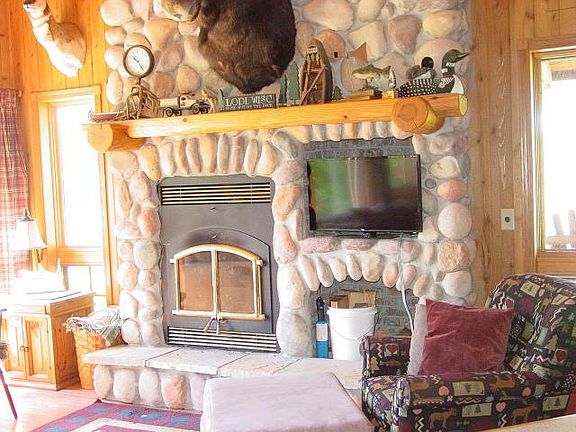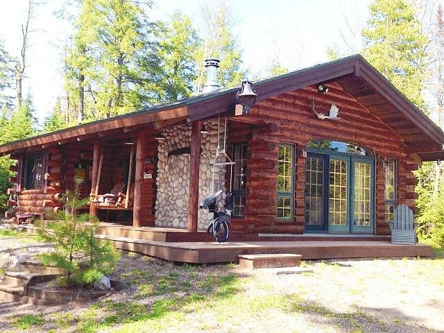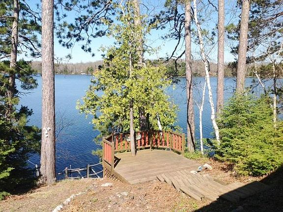 If you are in the market for a Northwoods Log Cabin with a killer view facing West -- you must see this adorable little 2 BR, 1 BA home. Sellers are leaving the very nice furniture that just fits in this cozy, rustic cabin. The great room, kitchen with eating island has a vaulted ceiling and a beautiful field stone fireplace. Off of this area are 2 bedrooms and a full bath. The loft above the bedrooms overlooks the great room and has a permanent ladder access --- the kids love this space! Enjoy the open deck on one end of the cabin or the lakeside covered deck. There is a wonderful deck closer to the water -- the perfect place to enjoy the fabulous lake views and sunsets. Also included are a cute little 8x10 childrens playhouse (or garden shed if you prefer) and a 1-1/2 car insulated, heated garage. The property has a drilled well and a very large 2500 gallon holding tank. Owner says he only has to have it pumped twice a year! Very easy cost and maintenance!